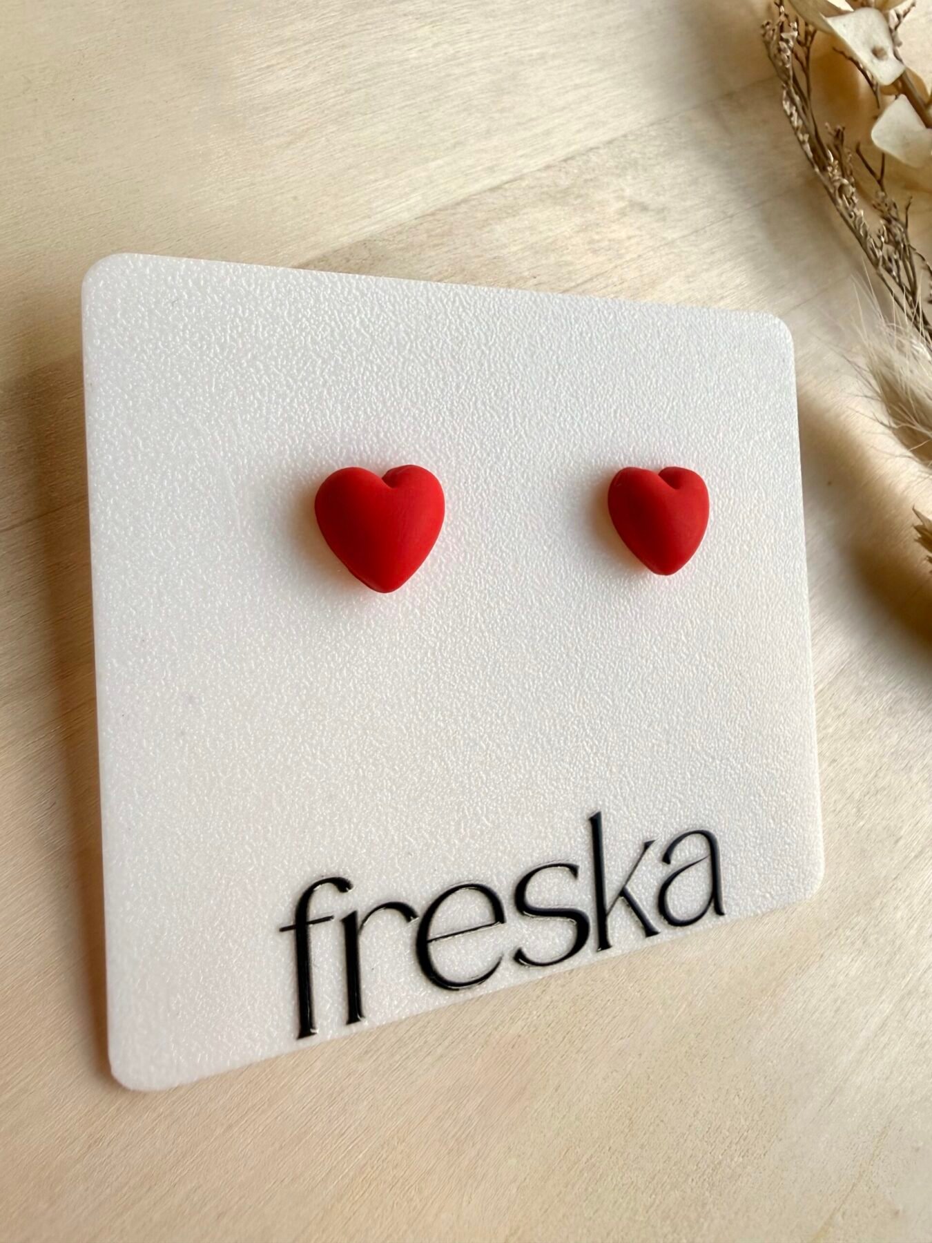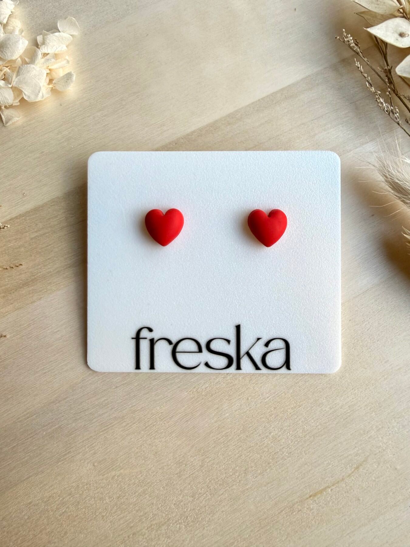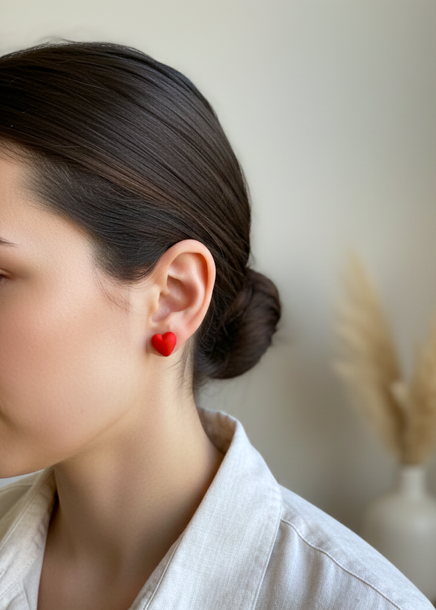 Dodaj mocny, romantyczny akcent z trójwymiarowymi kolczykami–serduszkami w intensywnej czerwieni! Matowe, ręcznie uformowane z gliny polimerowej serca mają miękki, wypukły kształt i są osadzone na bazie ze stali chirurgicznej, dzięki czemu nadają się także dla wrażliwych uszu.