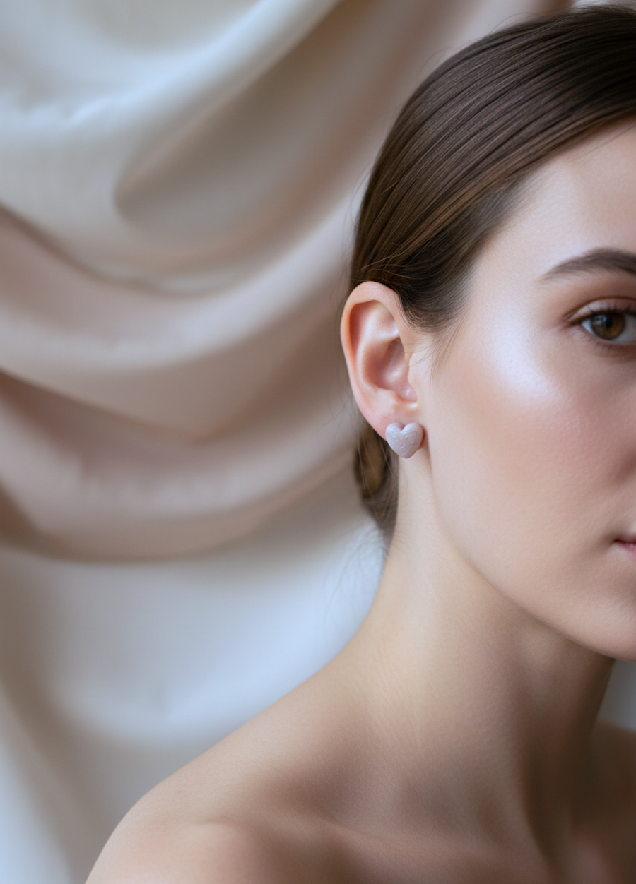 Pastelowe serduszka w odcieniu chłodnego różu z delikatnym srebrnym połyskiem to romantyczne, a jednocześnie subtelne kolczyki na co dzień. Trójwymiarowy kształt serca i lekkie drobinki sprawiają, że biżuteria pięknie mieni się w świetle, nie przytłaczając stylizacji.