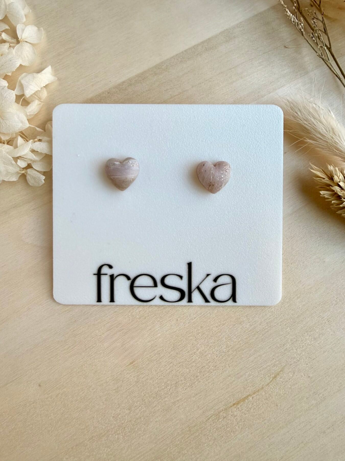 Kolczyki wykonywane są ręcznie, dlatego układ marmurkowych smug i ilość drobinek na każdej parze może subtelnie się różnić, co nadaje im niepowtarzalny charakter. Stal chirurgiczna jest hipoalergiczna i odporna na codzienne użytkowanie, dzięki czemu serduszka będą wygodne także dla wrażliwych uszu.